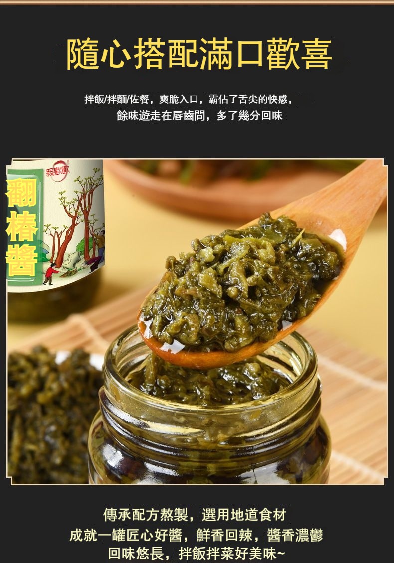 5分鐘前 【樹上蔬菜】亞洲第一抗癌蔬菜,精選新鮮香椿芽 手工製成 口味純正 鮮嫩爽脆 - 🔥98%客戶選擇【下殺 八入組】 僅需NT$1298【可吃半年】 均價162