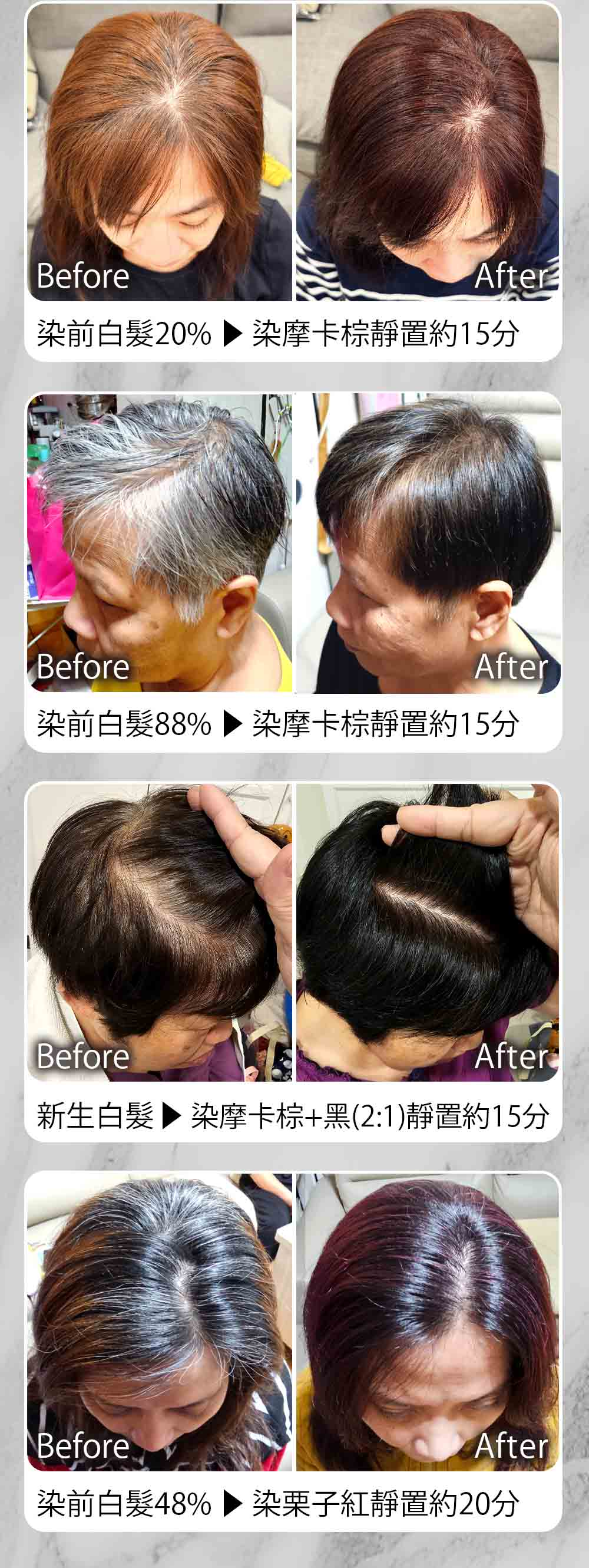 ◉染後洗髮時偶有染髮劑殘留於頭髮上,洗頭流出顏色皆為正常