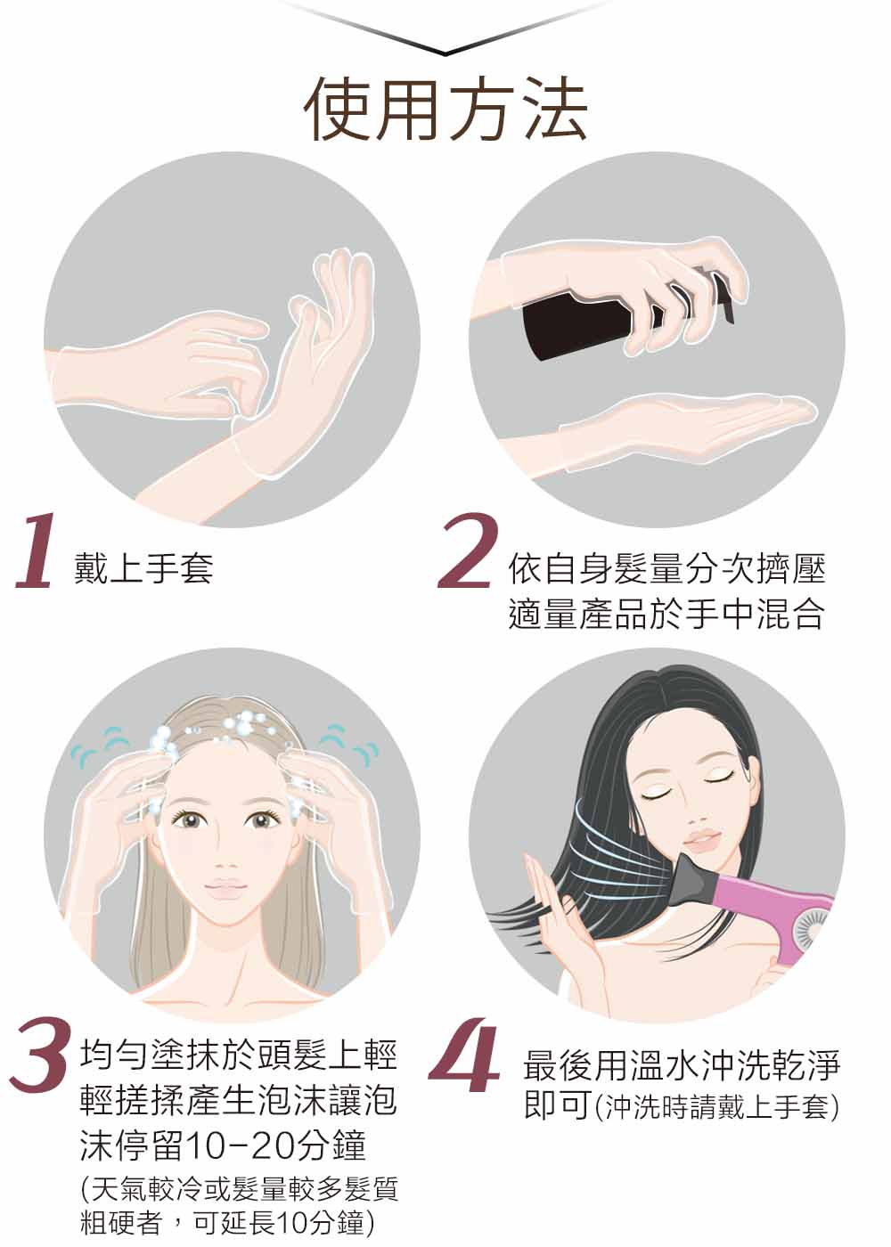 (天氣較冷或髮量較多髮質粗硬者,可再延長10分鐘)