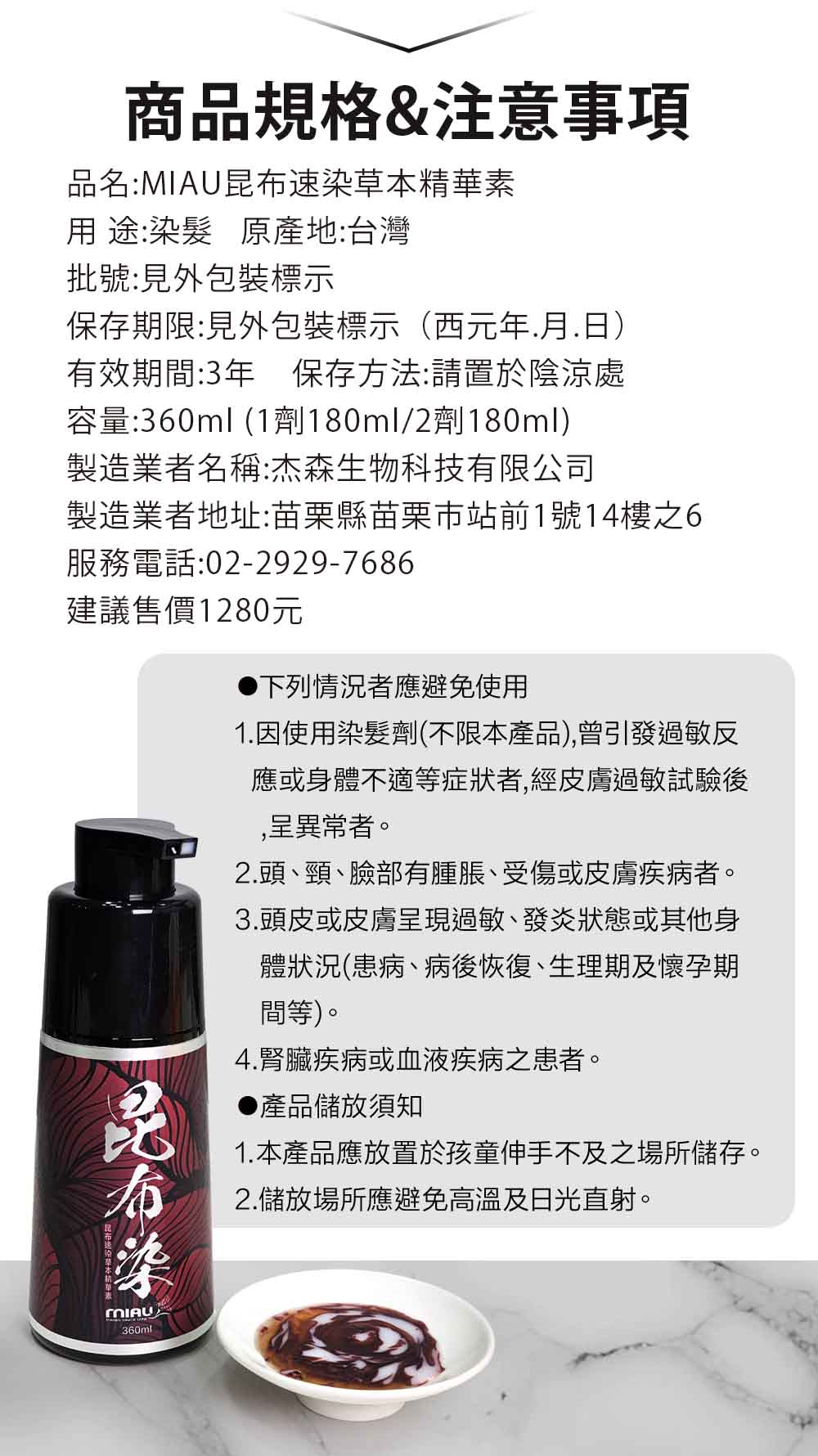 20分鐘前MIAU【昆布速染草本精華素】完美遮蓋白髮/染髮只要10分鐘/修護和鎖色的無臭配方/台灣生產〈無添加PPD/重金屬/甲醛/酯類防腐劑〉 - 均460/瓶►昆布染黑x3瓶組