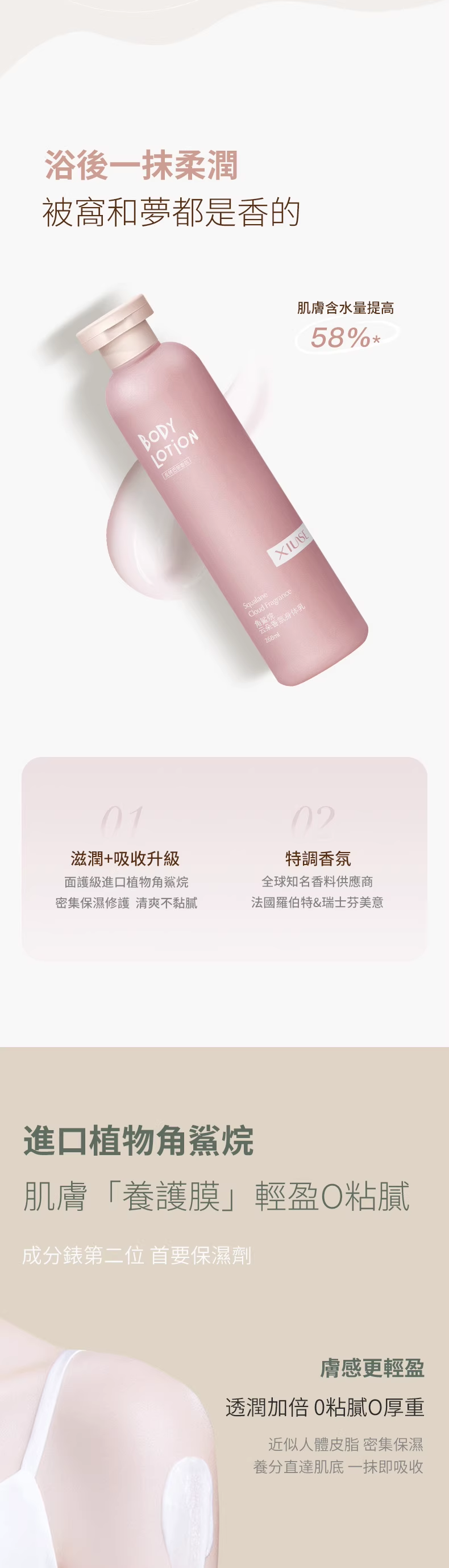 半小時前【男朋友抱著我說好香呀】植物香氛身體乳,出汗都是香香的~比香水更迷人,持久留香提亮膚色,保濕滋潤清爽不油膩,高級香味好聞不刺鼻,一天擦一次 走到哪都是香香的~ 免 - 【福利加碼】 五入組 -NT$1058(均價低於211)