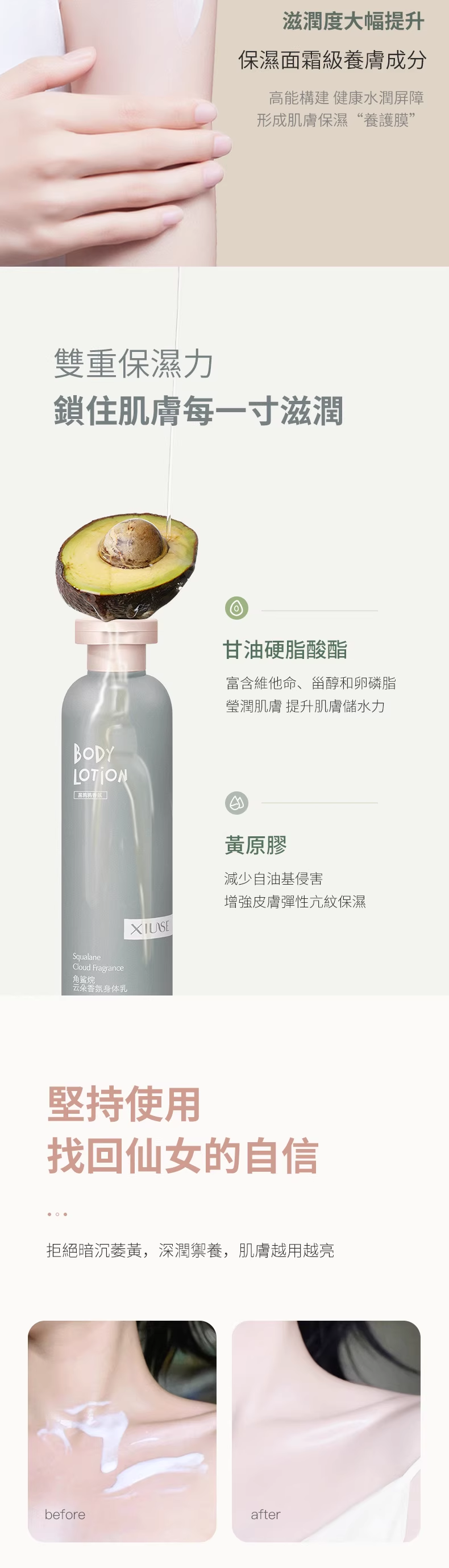 半小時前【男朋友抱著我說好香呀】植物香氛身體乳,出汗都是香香的~比香水更迷人,持久留香提亮膚色,保濕滋潤清爽不油膩,高級香味好聞不刺鼻,一天擦一次 走到哪都是香香的~ 免 - 【活動優惠】 三入組 -NT$958(均價低於319)