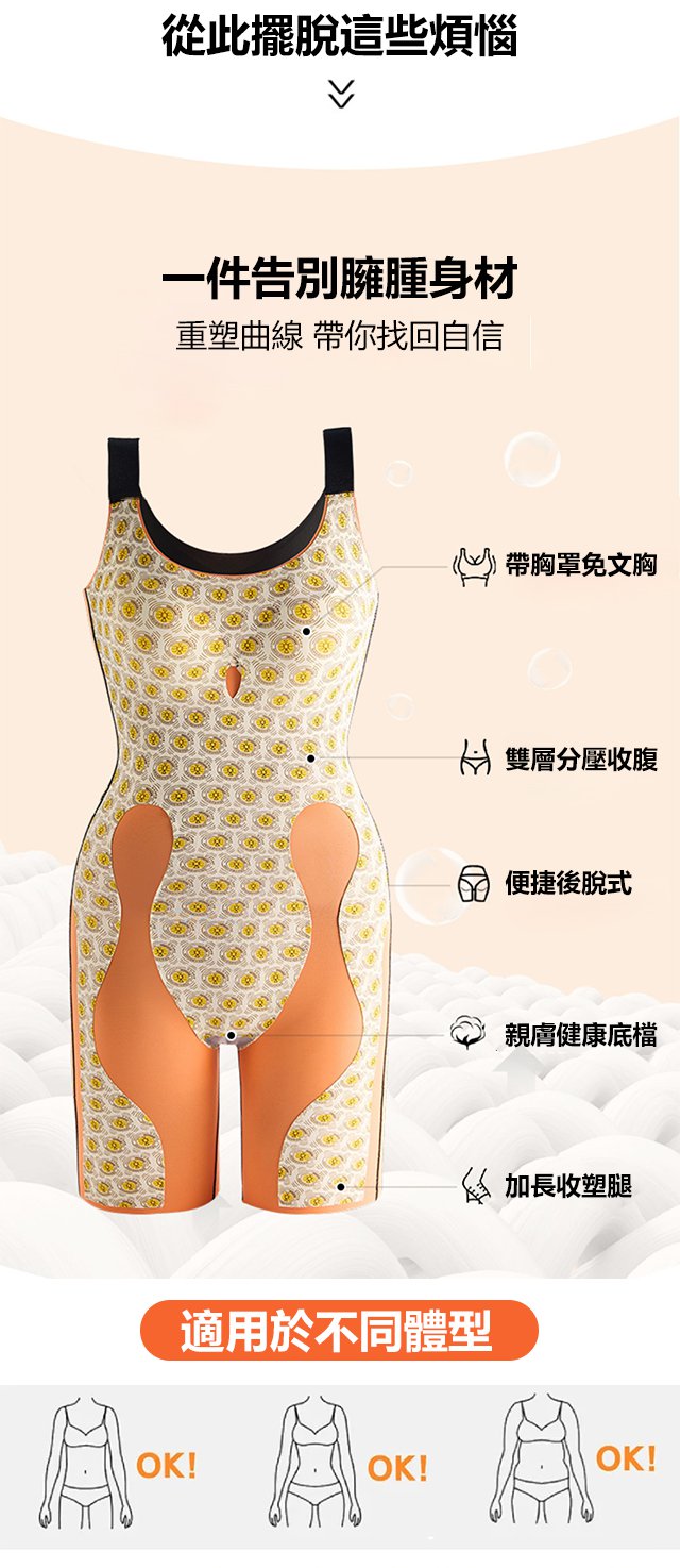 半小時前美婷液態無痕連體塑身衣产後脫塑形美體提臀收腹束腰帶胸墊薄款 - 【限時特惠】買一送一 2入組(免運) NT$ 1380